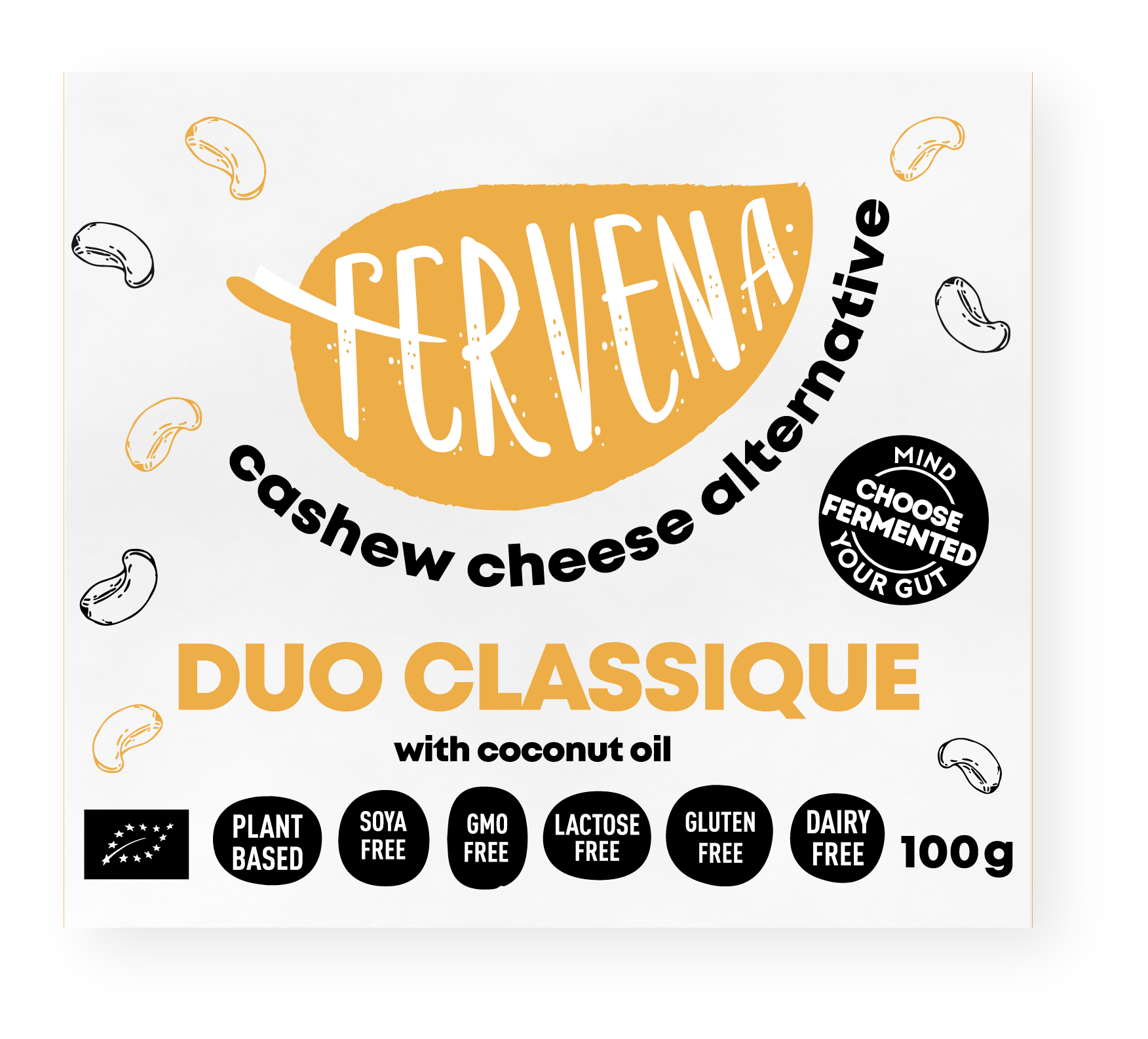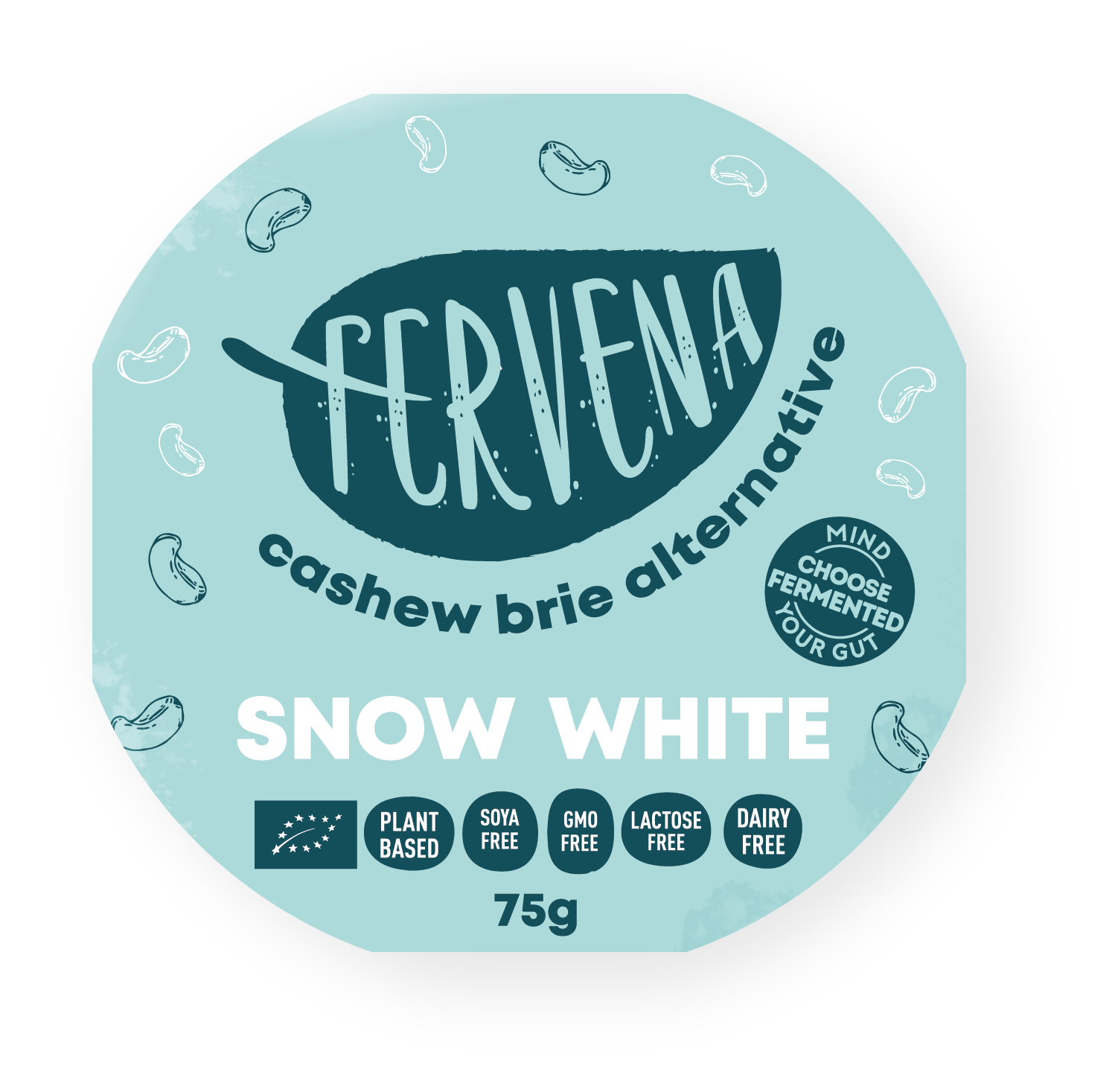 Fervena fermented cashew are cheese alternatives made from cashew, water, salt and starter cultures via a special proprietary process. Our brie alternative is flavourful and creamy, a total surprise it is completely plant-based.